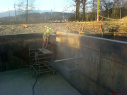 Pieskovanie nádrží vodným lúčom o sile 2500Bar. Odstránenie starých náterov bez požitia abrazíva len silou vody. Možnosť použitia na sanovanie betónov a pod.