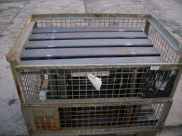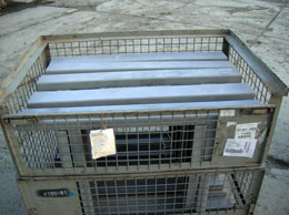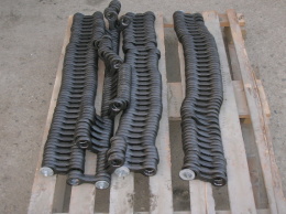 Tryskanie nárazníkov pre nákladné automobily. Tryskanie sa uskutočnilo pod povrchovú úpravu (Kataforéza)